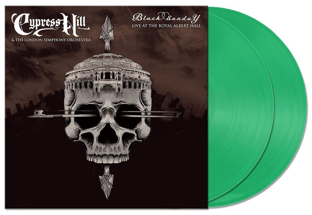 Vinyl release of Cypress Hill, London Symphony Orchestra - Black Sunday Live At The Royal Albert Hall (Transparent Green Coloured Vinyl). Released through Z2 COMICS and available on 2LP.