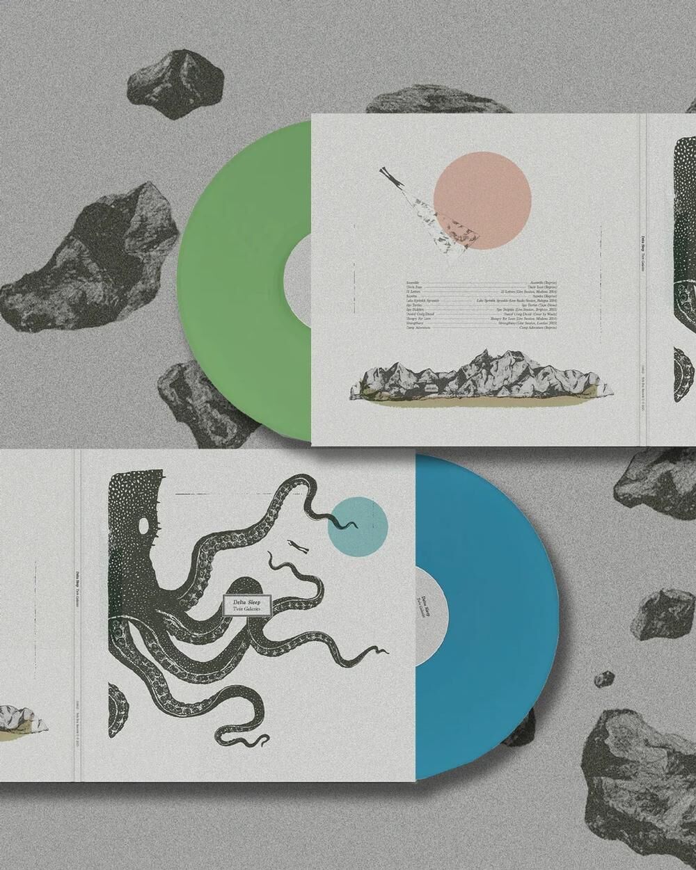 Vinyl release of Delta Sleep - Twin Galaxies: 10 Year Anniversary (Limited Blue & Green Coloured Vinyl). Released through SOFA BOY and available on 2LP.