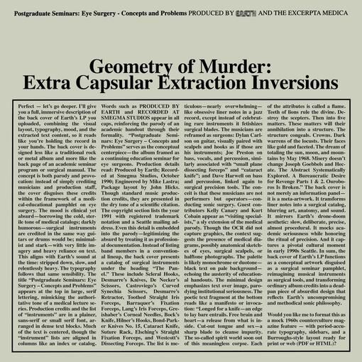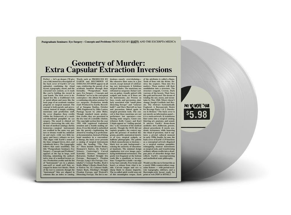 Vinyl release of Earth X Black Noi$e, Earth, Black Noi$e - Geometry Of Murder: Extra Capsular Extraction Inversions (Limited Crystal Clear Vinyl). Released through FIRE RECORDS and available on 2LP(150G).