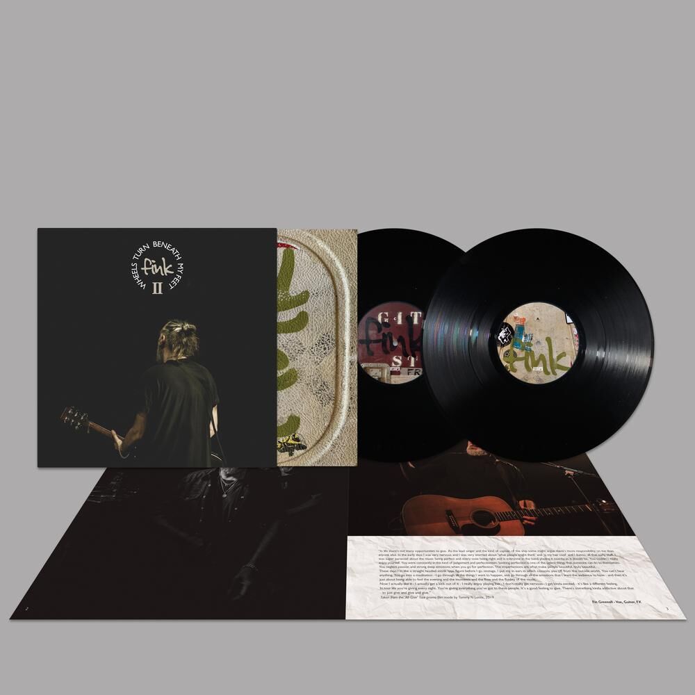 Double vinyl gatefold of Fink's Wheels Turn Beneath My Feet II, featuring live recordings spanning more than ten years. Includes a 32-page booklet and spot gloss cover.