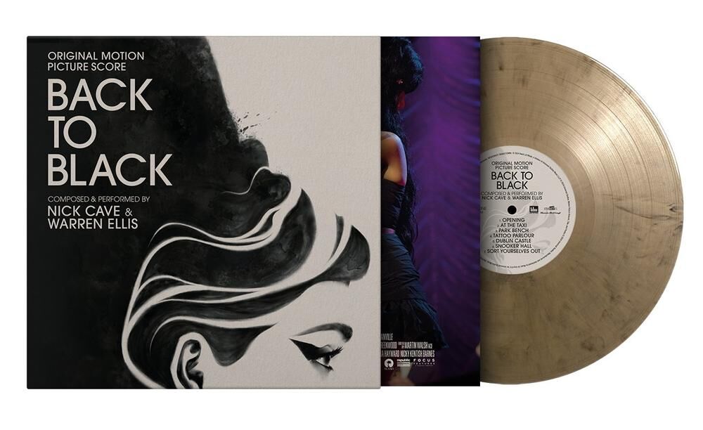 Vinyl release of Soundtrack, Nick Cave & Warren Ellis - Back To Black: Original Motion Picture Score (Limited Gold & Black Marble Coloured Vinyl). Released through MUSIC ON VINYL and available on LP.