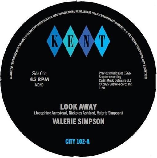 Vinyl release of Valerie Simpson - Look Away / It’s Just Love. Released through Kent Records Uk and available on 7in.